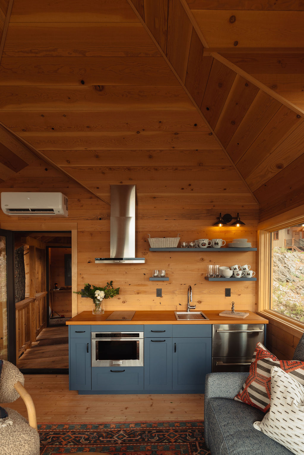 Tucked beside the living space is a compact kitchenette designed for easy meals and morning coffee with a view.